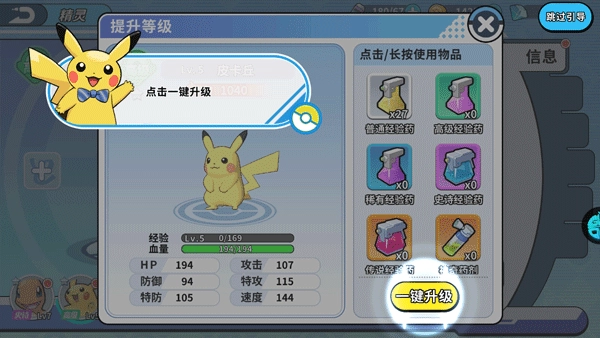 4、皮卡丘成功升级了
