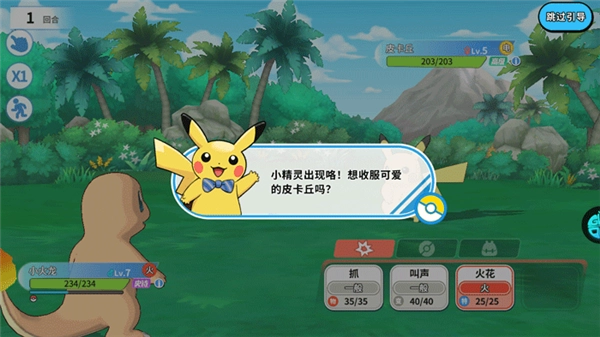 2、捕捉皮卡丘时,得先把它的血条打低一些,这样使用精灵球捕捉起来会更容易