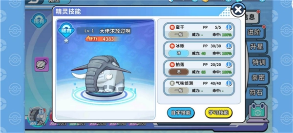 2、选择我们要提升的精灵