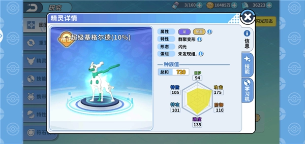 种族值:550;超进化形态种族值:650;闪光形态种族值:670(此为重点信息)