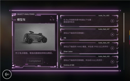 完成右侧所有指定任务后,会解锁一首曲子。需要注意的是,部分人物曲包包含两个任务界面,分别对应两首不同的曲子,请仔细辨别两者的差异。