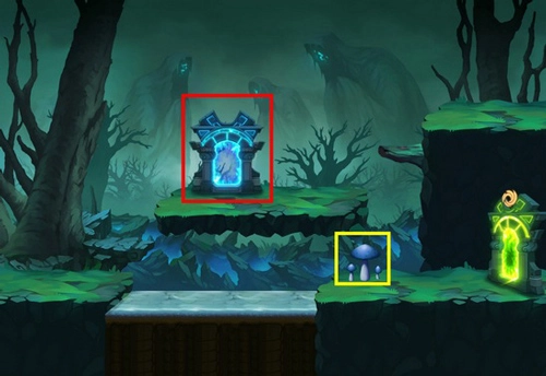注意事项:中间有一株捕蝇草,左侧有一个蘑菇。两侧位置会随机出现一扇蓝门。