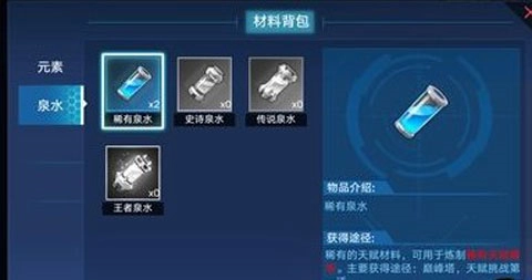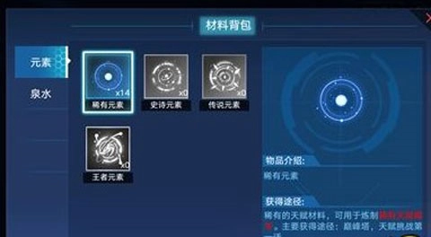 【稀有天赋精华×1 = 稀有元素×15 + 稀有泉水×3】