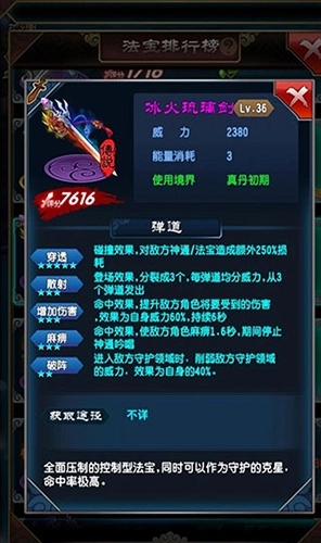 提醒:在化晶阶段,冰璃剑和寒光涧这两件法宝的出场率比较一般。考虑到冰火琉璃剑的效能十分强大,它完全可以成为你在《魔天记》里合成的第一件真丹法宝。