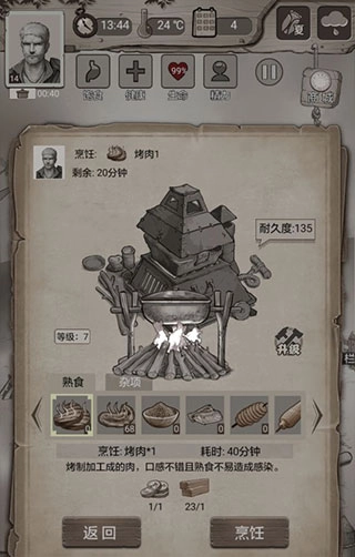 10、回到家后,要是浆果吃完了,就做些烤肉。烤肉能以低成本将无法食用的生肉转化为可吃的食物,在发展科技之前,比那些消耗两根木头的烤素食强太多了。
