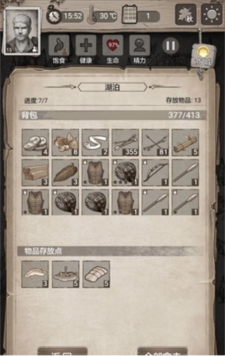 3、药材方面:草药是关键物资,内伤若不留意,可能在睡梦中就会出意外,丘陵关卡会有大量草药产出;水也至关重要,务必在家中制备足够的水,因为汤药、食物和茶的制作都离不开水。