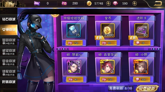 也可以把多余的女神碎片进行分解,从而获取一定数量的女神兑换券,再到女神商城里兑换自己需要的女神碎片。这对于不敢培育女神的玩家来说十分友好,不必担心资源被浪费,尽管放心去培养她!