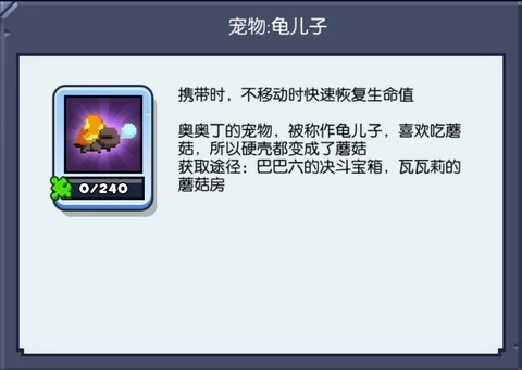 在《野蛮人大作战》里,奥奥丁最疼爱的宠物非它莫属,他总亲昵地叫它“龟儿子”。这小家伙对蘑菇情有独钟,连身上最珍贵的硬壳都慢慢长成了蘑菇的模样。作为长寿的象征,它能让携带者在静止不动时快速恢复生命值——这下蛮蛮们再也不用发愁找不到鸡腿来保命啦!