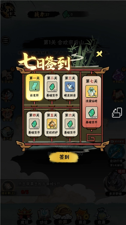 2、接下来点击屏幕左侧第一个图标“七日好礼”,通过签到领取奖励。
