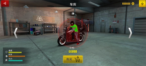2、首次进入时系统会直接赠送66万货币,这些货币可用于解锁和购买各类摩托车。