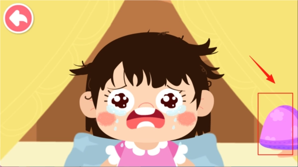 3、首先宝宝得先帮妹妹擦一擦小脸蛋,点击右侧的毛巾就能帮妹妹把脸擦干净啦。