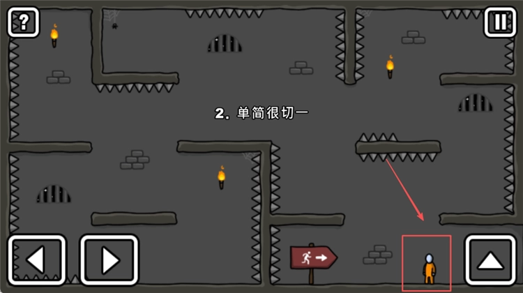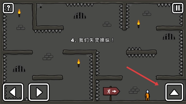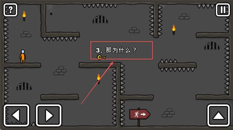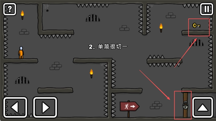2、在关卡中,你可以通过【红框内】的方向按钮来操控火柴人移动,目标是获取场景里的【钥匙】道具。