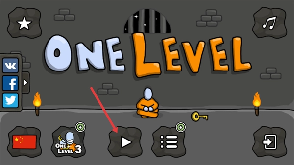 1、在初始界面点击【播放按钮】,进入【ONE-LEVEL】对应的逃脱关卡,开启火柴人逃脱挑战。