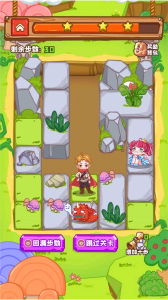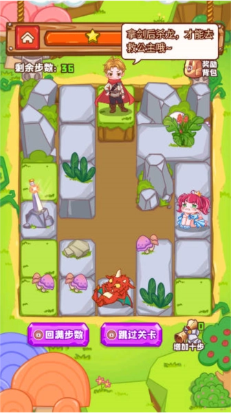 通过滑动或点击的方式移动方块,调整勇者、宝剑、恶龙与公主的位置。