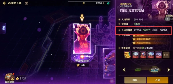 不过到了68级之后,前面说到的“最后10点疲劳选择冒险级勇士地下城”,要是抗魔值没达到33000的话,是进不去的。