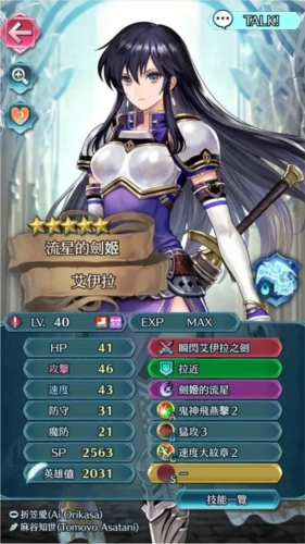 总选举塞立卡绝对是爆发型物理红剑里的佼佼者,起手用狮子连斩能砍四刀——这技能本身攻击两次,再加上武器变勇剑后触发追击,刚好四刀。搭配鬼神4的话,每一下正手攻击都能额外加32伤害。她自身速度有39,武器还加3速,追击基本不用愁;武器自带变化计量+1,攒奥义的速度也很快。在火焰纹章英雄里,她属于那种起手四刀大概率能秒人的红剑,但持续作战能力比较弱,毕竟狮子连斩只有满血才能触发,所以基本也就开局能用一次,特别适合缚锁或者其他没有增援的短回合地图。