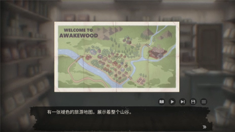 3、依次点击界面上的放大镜图标进行探索,会找到一张包含整个村庄和森林的地图,店内各个角落都显得很诡异,好像被阴云笼罩着。