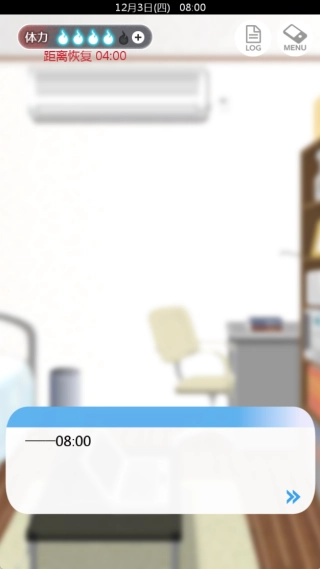 男主回到宿舍后,因疲惫倒在床上睡了过去,这时候消耗了1点体力,第一天也就此结束。