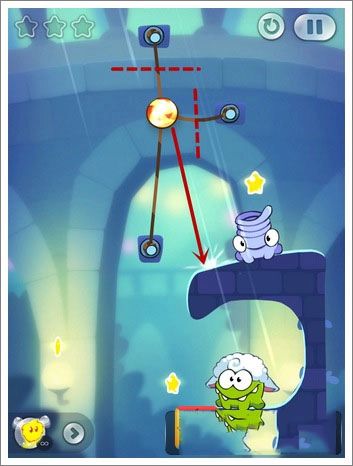 1、把嘴上方的绳子切断,这样糖果就会掉落并收集星星(不会被Toss抓住)。