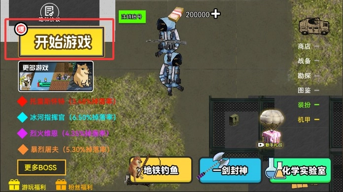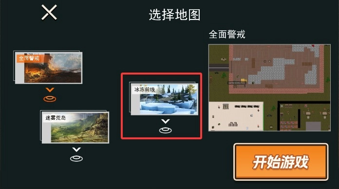 1、打开后点击“开始战斗”按钮,系统会加载可用的武器和角色数据,确认装备配置无误后,就能进入地图选择界面。