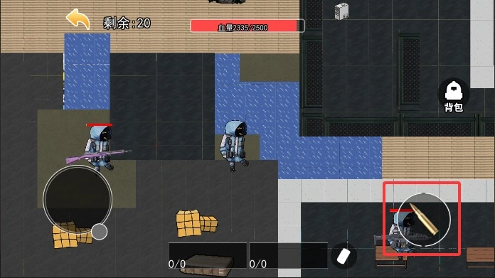 3、遇到丧尸时点击射击按钮发起攻击,武器会自动锁定距离最近的目标射击,连续点击能提高射速,快速消灭尸群。