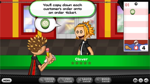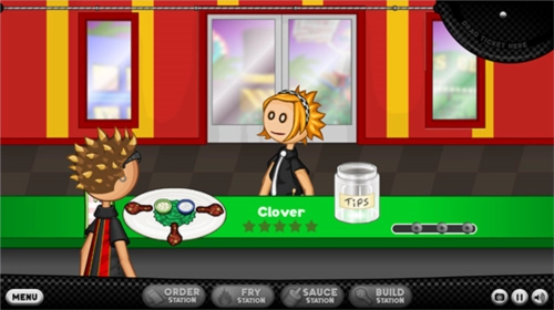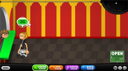 2、来到老爹炸鸡店,玩家首先要接待客人;