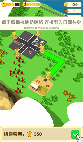 4、玩家可以根据需求来选择路况来进行修路;