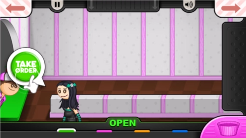 5、完成教程后,这时有位顾客前来,我们点击“TAKEORDER”按钮来接受她的点餐需求。