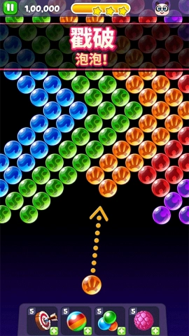 超级泡泡、炸弹泡泡、彩虹泡泡等多种道具可自由组合——它们不只是清除屏幕的工具,更是扭转战局的重要因素:准确预判泡泡轨迹、把握引爆时机、借助连锁反应,让每一次发射都富有策略性。真正的高手,凭借的从来不是运气,而是对物理规律和色彩逻辑的双重驾驭。