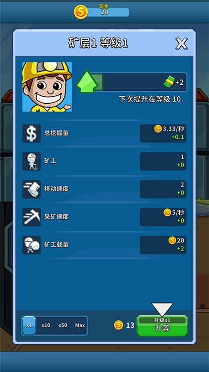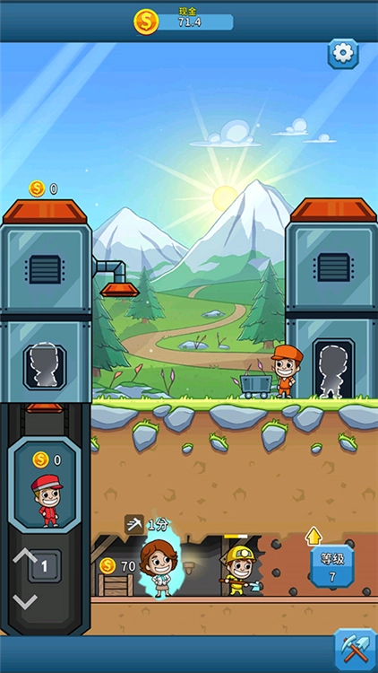 游戏前期,玩家需要通过手动点击来推动业务起步,积累到初始资金后,就可以招募优秀的管理人员,让矿山采集实现自动化运营。值得一提的是,每位矿工都拥有独特的能力,合理地对他们进行升级强化,能够显著提升采集效率。