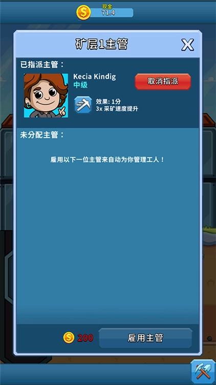 游戏内设有监工、矿山经理等可聘用的管理人员。这些人员能自动监督工人作业,使玩家不必持续手动点击操作。随着游戏进程的推进,还会解锁更多高级管理人员,从而进一步提高管理效率。