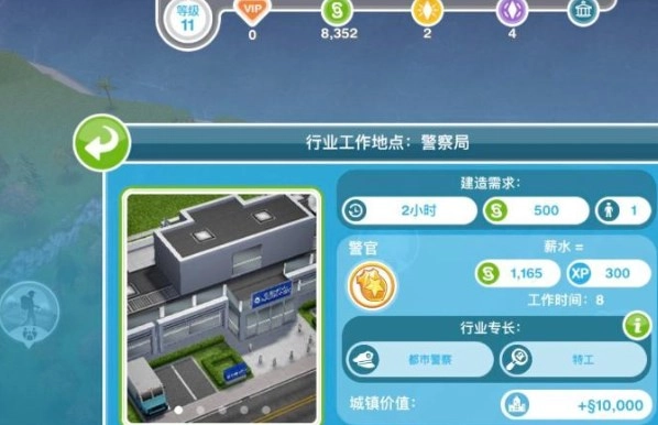 让模拟市民上班是最直接的赚钱途径。小镇上有丰富的职业选择,像消防员、警察、电影制片人、医务人员等。当市民在指定时间完成工作后,就能获得数千模拟币和数百经验值的奖励。
