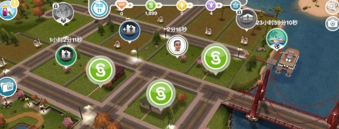 每隔一段时间,玩家打开城镇地图时,会发现已解锁的建筑物顶部出现模拟货币奖励,点击就能领取。这些建筑物涵盖市民住宅,也包括公园、商店等类型。即便建筑物内没有公民,玩家依然可以获得奖励。