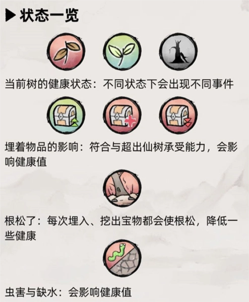 二、功能与禁制:该物品会随时间推移逐渐消耗,当消耗殆尽后,树木将面临两种情况——要么被破坏,要么被偷走并埋入宝物;若树木被破坏,会导致健康值下降;若宝物被偷走并埋入,则宝物会消失不见。