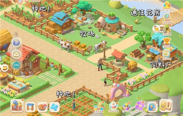 农田能种植多种多样的作物,请注意!里面的牛和鸡是会四处走动的,可别让它们把你的农田给弄坏了!