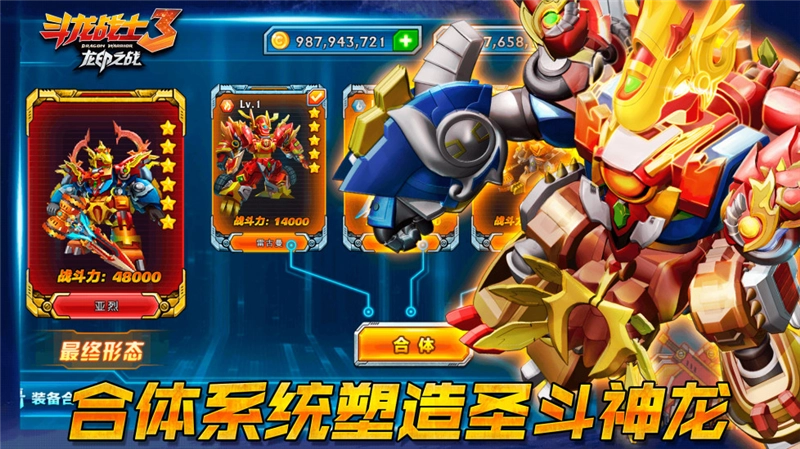 3、创新的合体系统,能让玩家变身圣斗神龙,释放强大技能。