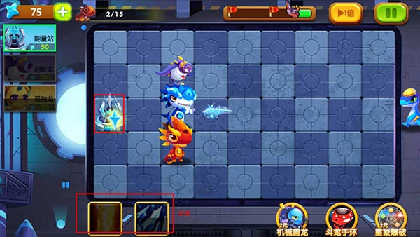 5、我们的能量站可以产出能力石,用于冷却并更新小恐龙和技能;若敌人数量较多,可使用技能来消灭它们。