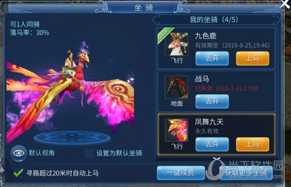 2、点击界面中南“上马”即可骑乘该坐骑。