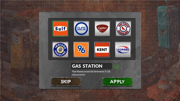 1、首先,玩家在本站注册完成后,打开并进入游戏,为自己的加油站取一个好听的名字并设计一个标志;
