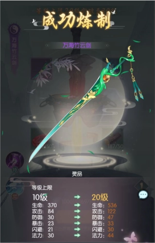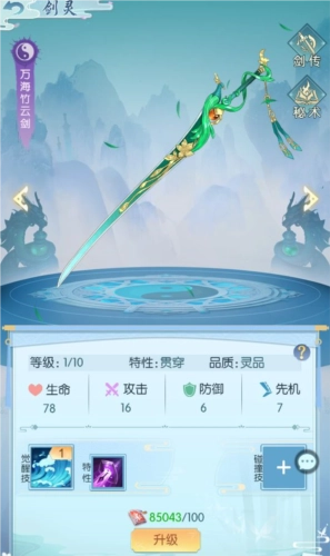炼制完成的剑灵会被收纳进宝囊,选择对应的剑灵就能开展培养;当剑灵等级达到当前上限时,可消耗材料再次炼制,以此突破等级上限。
