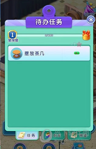 2、接下来要着手修复奶茶店,首先放置一些新的茶几,点击任务选项,启动集市的重建工作,摆放茶几的过程会消耗1颗红星。