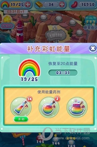 2、还可以向好友求助,具体操作是:先打开客户端,点击界面左上角彩虹桥后方的加号,此时会弹出补充彩虹能量的提示,下方有三个能量瓶,点击第一个带有“求助”标识的能量瓶即可。