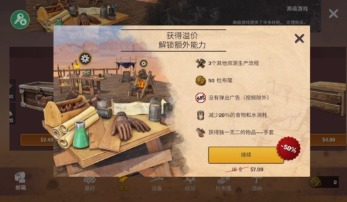 为了顺利开发木筏,你得先建立安全区域并储备实用资源。要在生存中活下来,你可以制造机器来提取水和食物,还能制作衣物与材料以升级木筏的设备,之后你就能在狂野西部隐匿起来。但要是从沙下收集过多补给和资源,那可能会是你最后一次见到太阳。