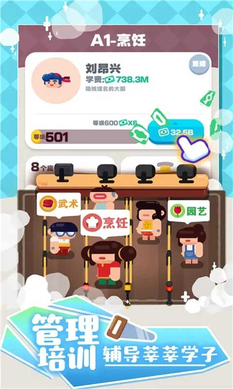 无论在什么阶段,玩家都需要不断优化学校的管理模式与运营策略,以保证学校一直保持领先优势,并具备充足的发展空间。