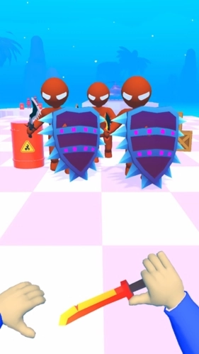 2、玩家能够操控角色拿起飞刀,朝着对面的敌人发起飞刀攻击,要留意在敌人靠近你之前将他们击败。