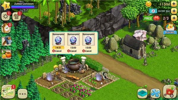 4、探索壮丽的岛屿,在灌木丛中开辟出自己的路径,一步步接近僵尸秘密的真相。种植那些不寻常的植物、水果与鲜花,用来烹制Zombium。