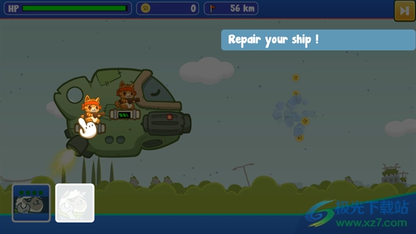 2、把猫拖上船,你的猫咪会自动攻击外星人;