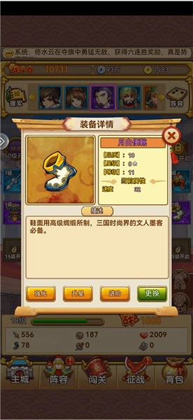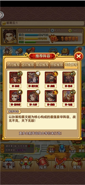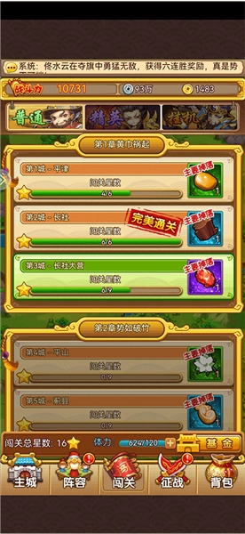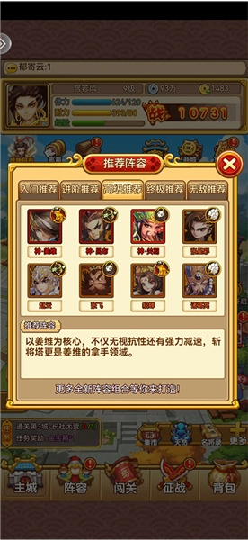6、大家要好好研究推图技巧哦,推图能获得银币、金币和将魂。前4章推荐用3炮3军1法1弓的组合,或者3炮2军2法1弓也可以;第5章之后需要换成3弓3法的配置,但这个阶段对你们来说还早,所以前期就用前面说的组合就行。另外,炮优先升级晕炮,弓升级弩,法升级冰法,军升级电。