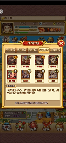 以庞统为核心,他堪称暴力输出的化身,无论是闯关还是征战,每一次出击都能直击要害、一击制敌。