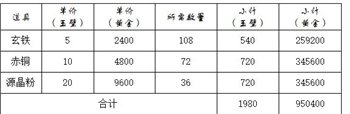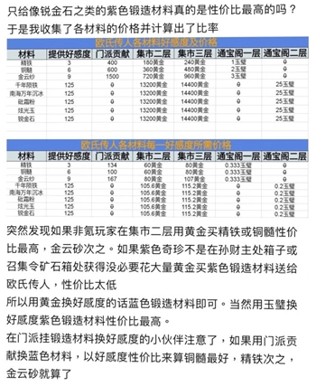 锻造神兵所需的材料清单如下:1份神兵雏形、1张图纸、1件神兵奇珍、1颗宝石、108块玄铁、72块赤铜、36份源晶粉。需要注意的是,前四种材料(神兵雏形、图纸、神兵奇珍、宝石)需使用融星玉在欧氏传人处兑换,而后三种材料(玄铁、赤铜、源晶粉)可通过集市或通宝阁获取。各类材料的单价以及合计所需的玉璧(黄金)信息如下。